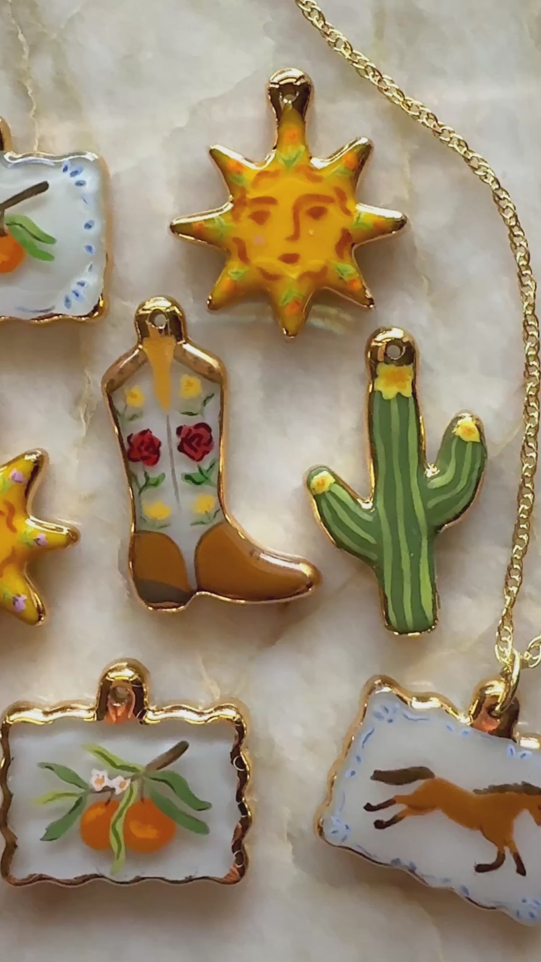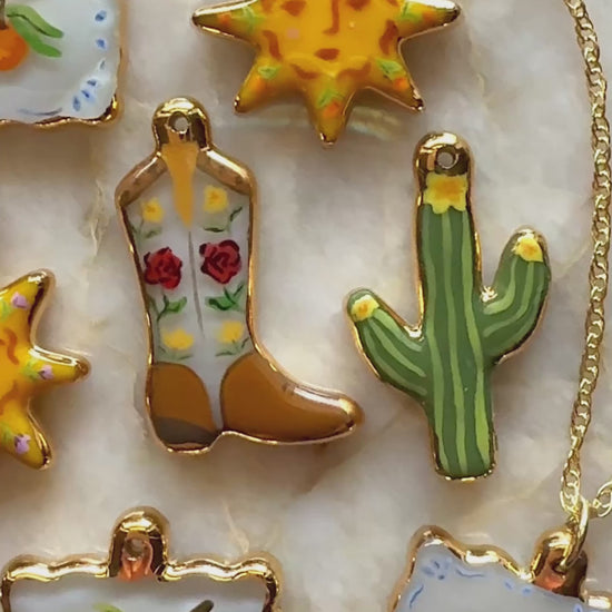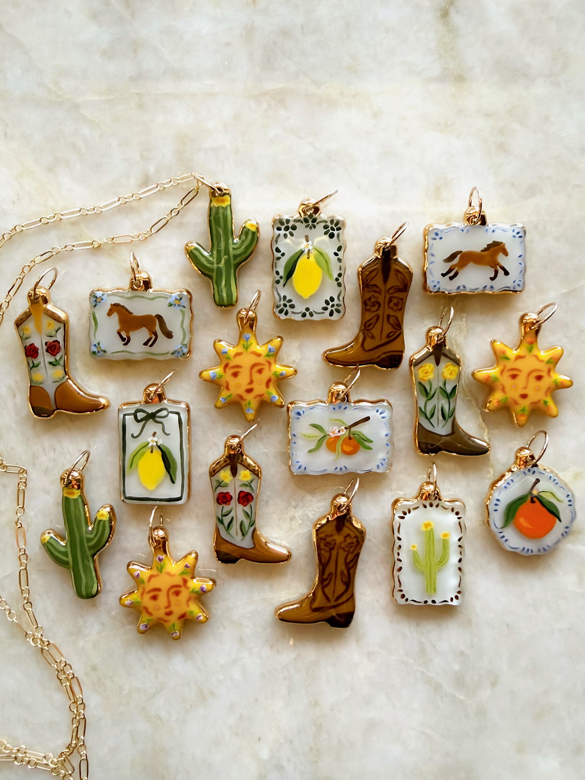 Each piece is designed, individually shaped, painted and finished by Hillary. The charm you see is the one you get, truly one of a kind.