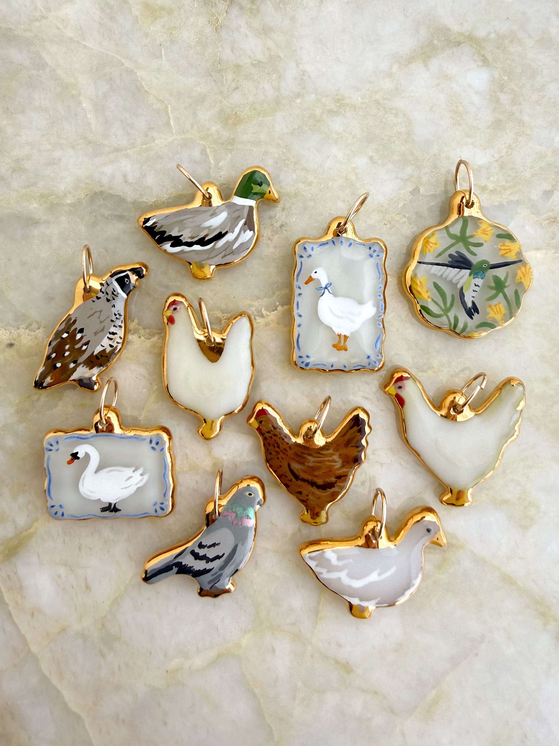 Each piece is designed, individually shaped, painted and finished by Hillary. The charm you see is the one you get, truly one of a kind.