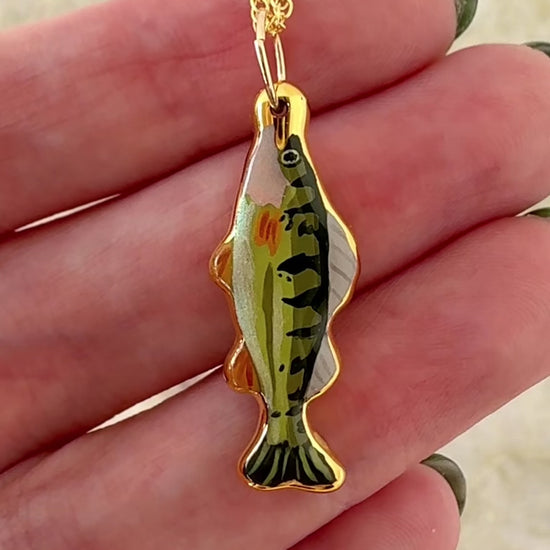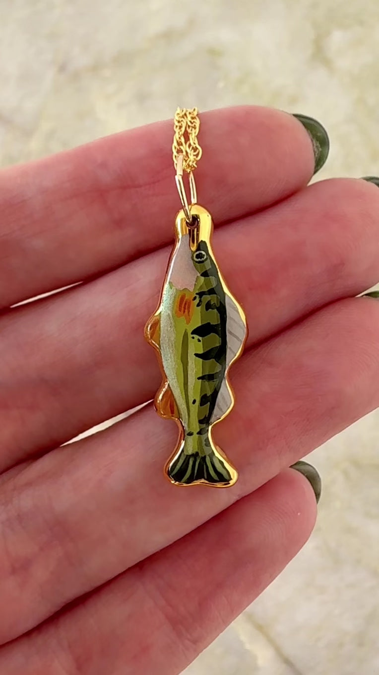 A yellow perch charm with 24k gold luster painted on the edges.